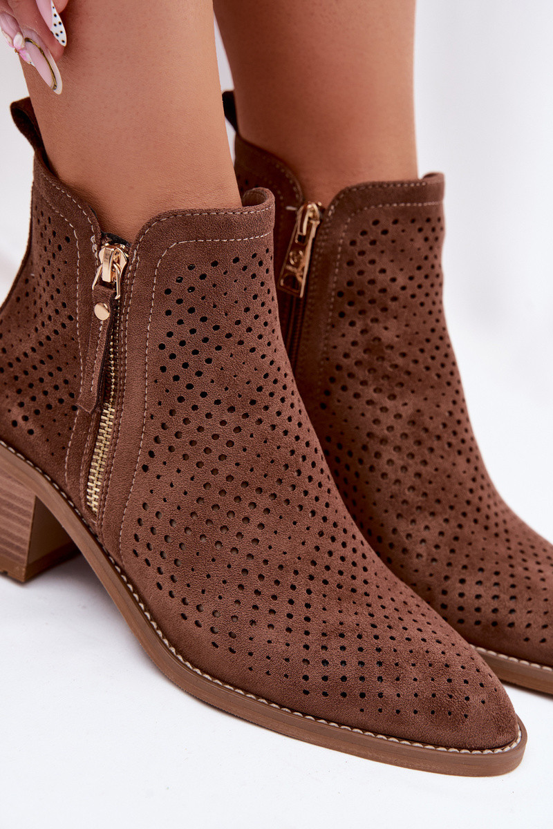 Botines de mujer con detalles calados Vinceza 58621 color marrón