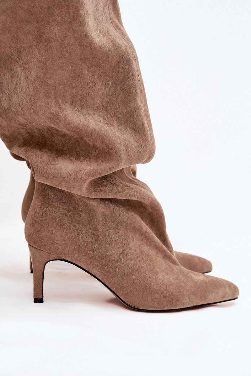 Botas altas de mujer con tacones delgados, modelo sin cierres, color arena Tai turivilla