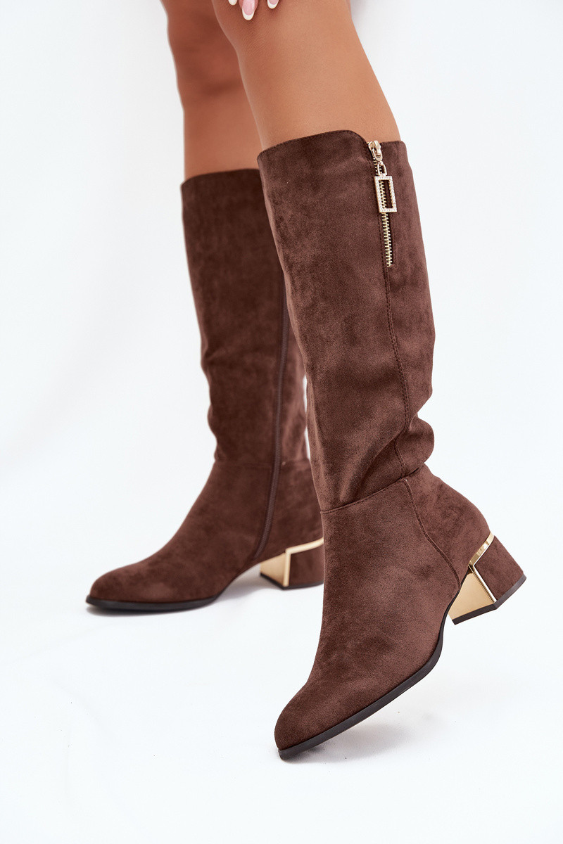 Botas largas para mujer con tacones de ante ecológico color marrón Lyvienne