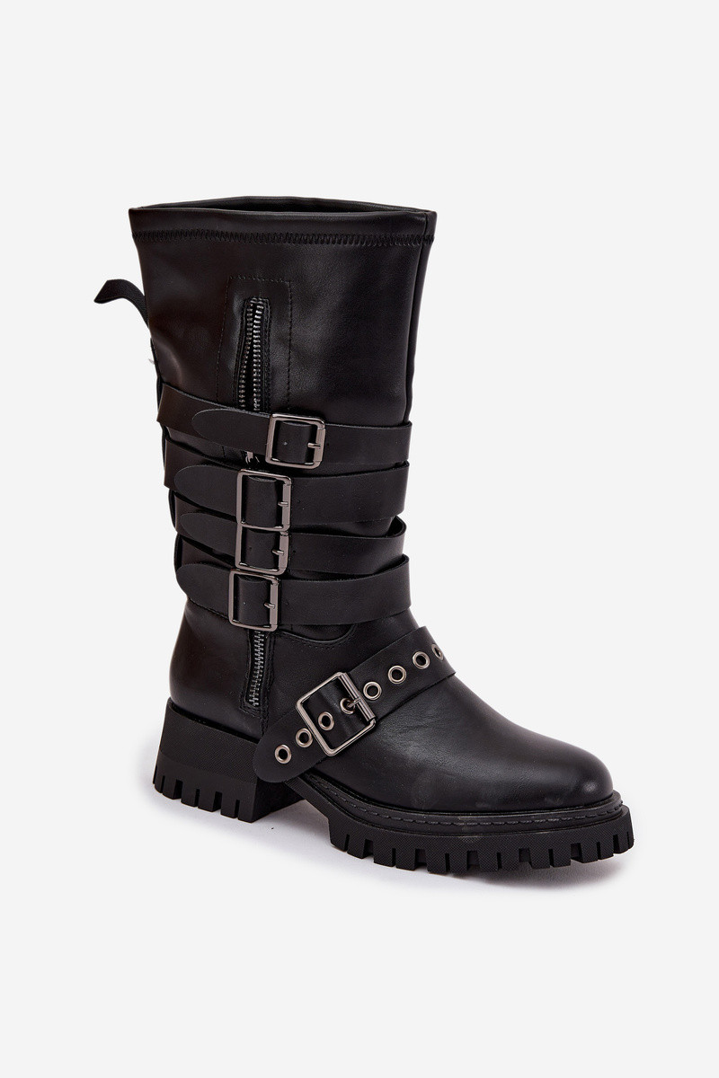 Botas largas acolchadas negras para mujer con cintas y hebillas "Ivaline"