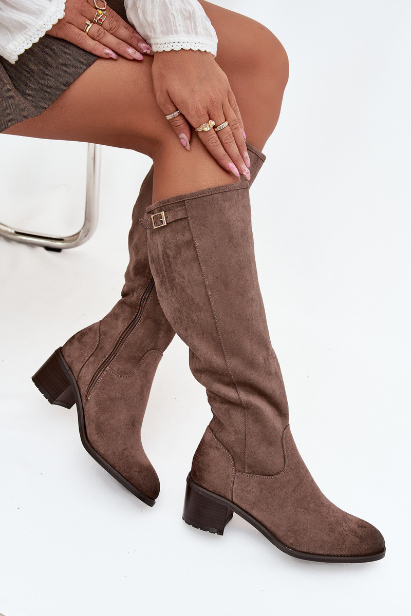 Botas cálidas con tacones con hebillas doradas Vinceza 58589 beige