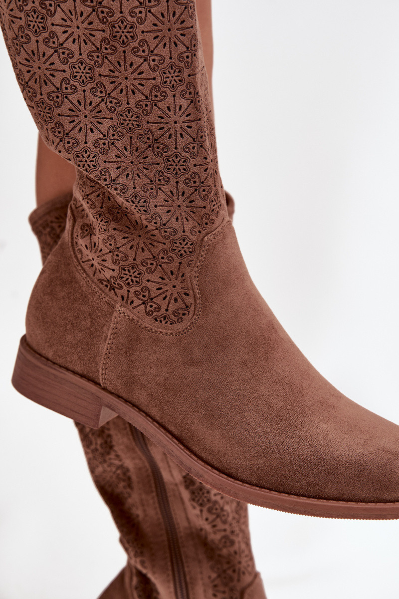 botas de mujer con elementos calados con tacones anchos S.Barski HY52-534 color marrón