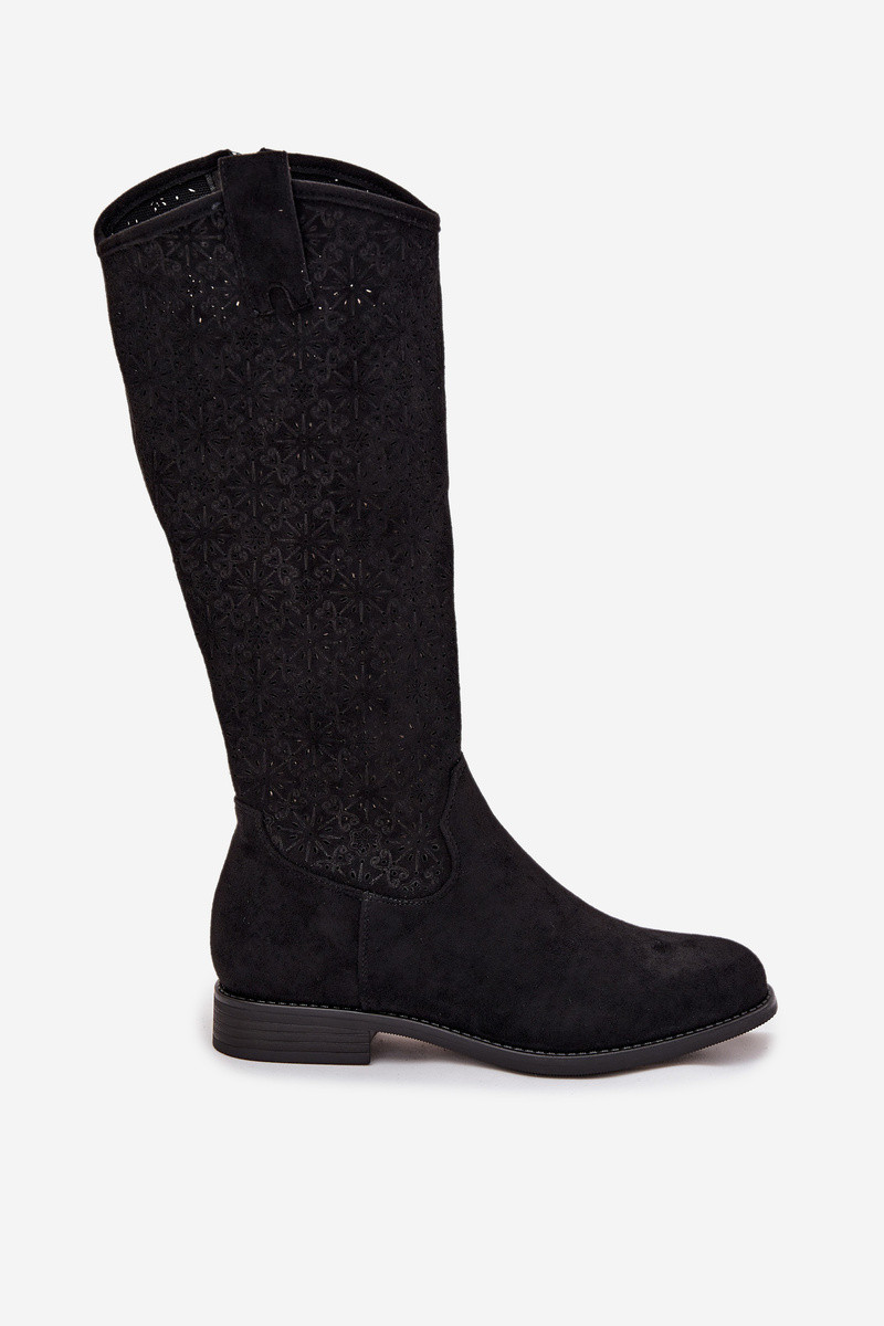 botas de mujer con elementos calados con tacones anchos S.Barski HY52-534 de color negro