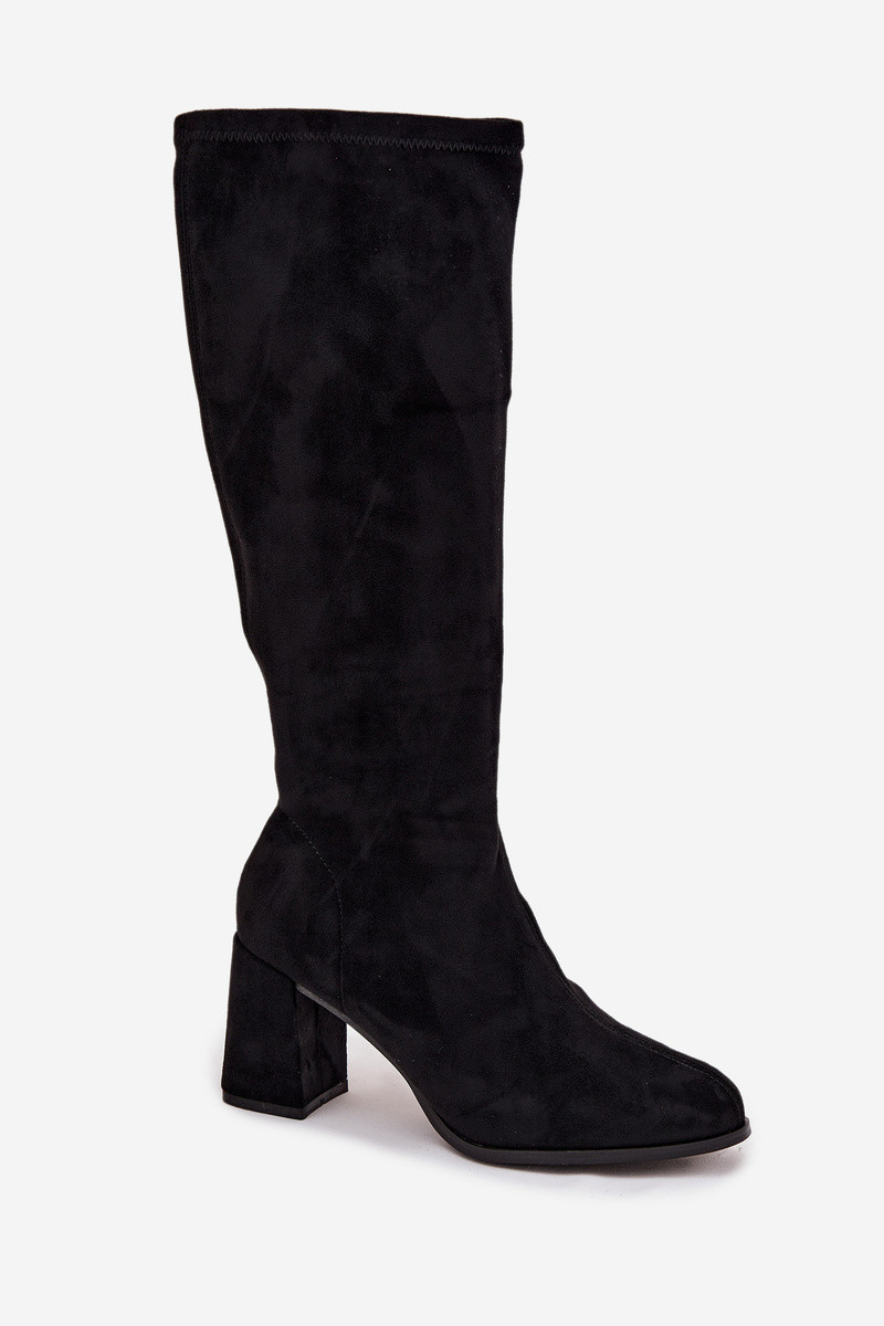 botas de mujer con taconesde gamuza ecológicau de color negro Yelisse