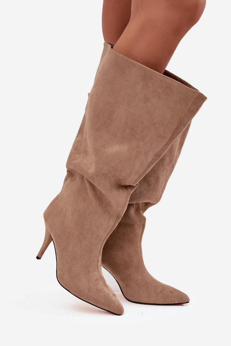 Botas largas de mujer de modelo sin talón con tacones delgados de ante sintético color arena Noretta