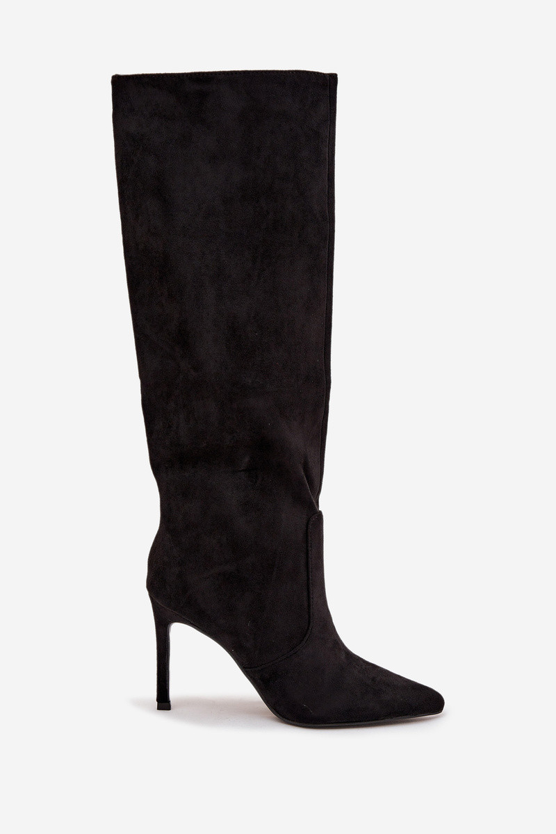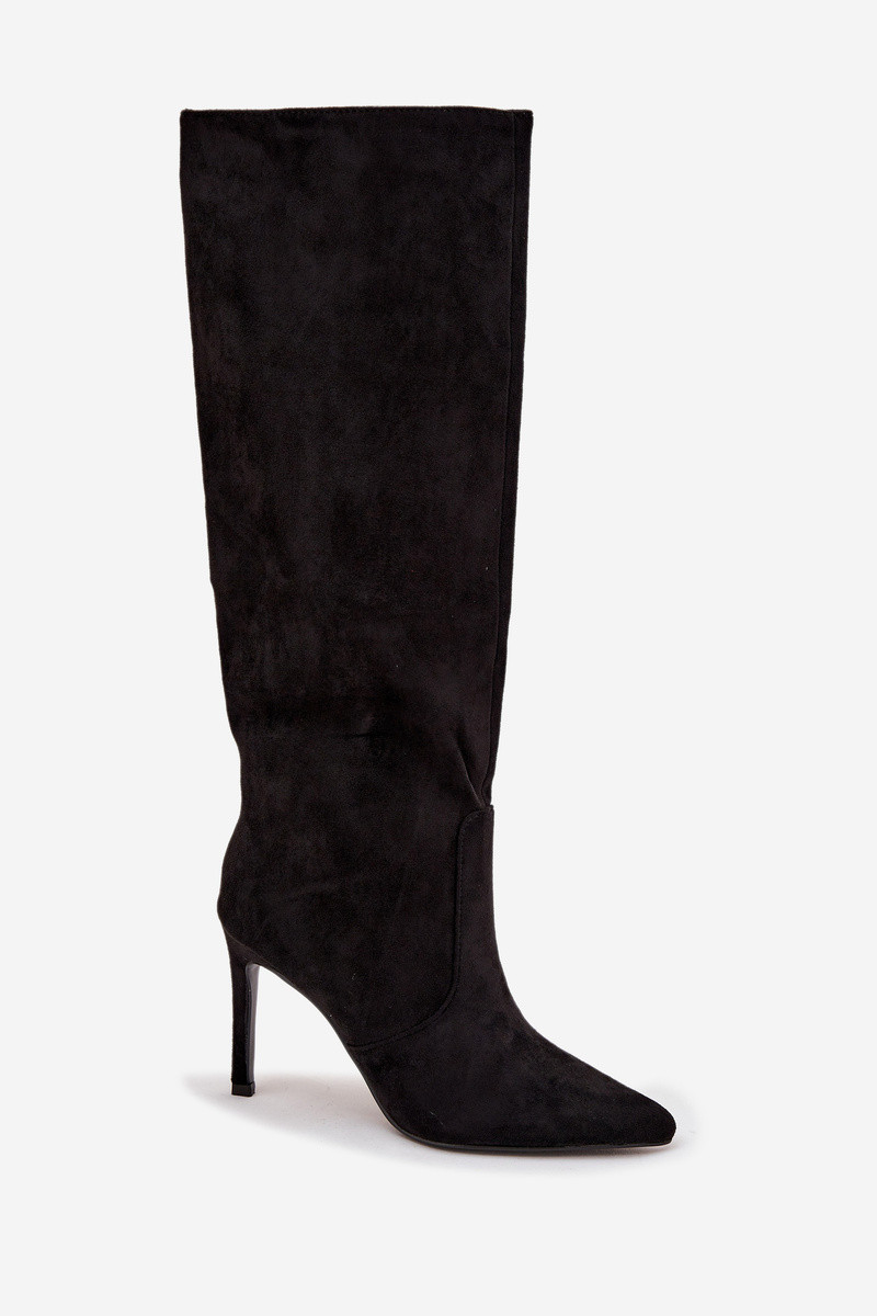 Botas altas de piel sintética color negro para mujer, forradas y con tacones finos Rosavine
