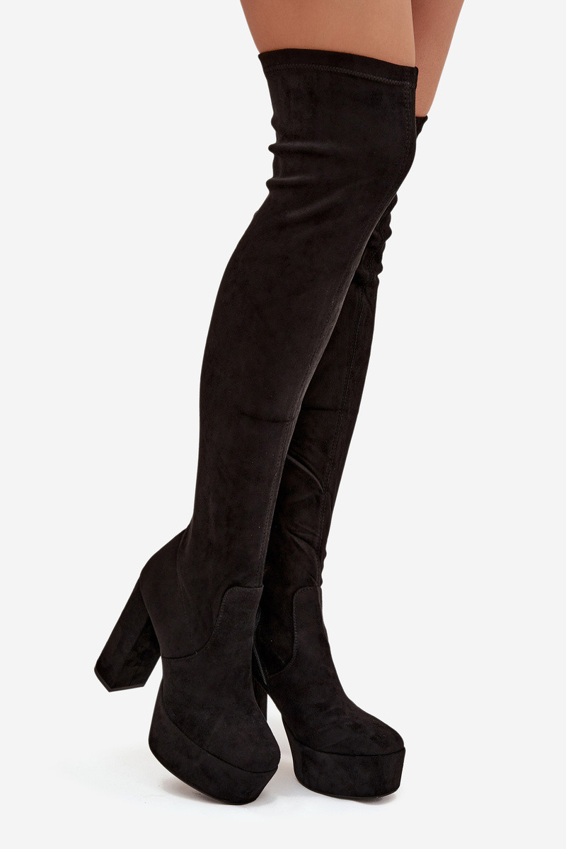 botas con tacones y plataforma por encima de la rodilla de gamuza ecológicaoAe de color negro Amareen