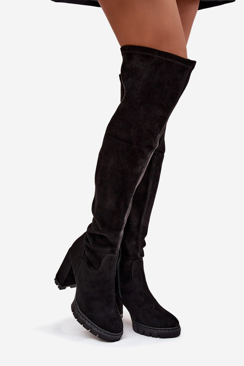 botas de mujer por encima de la rodilla con tacones de gamuza ecológicaoAe de color negro Tahlina