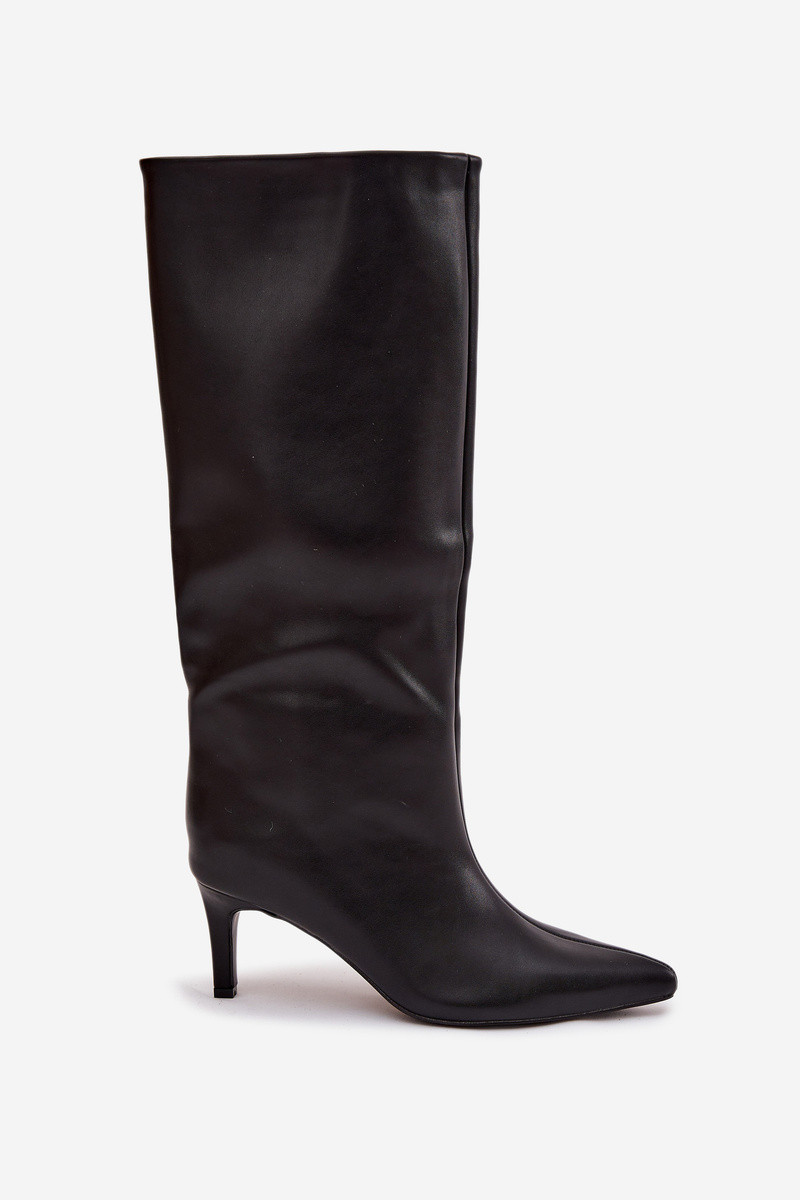 Botas largas de mujer, de tipo deslizable con tacones finos y costura en color negro Olyvia