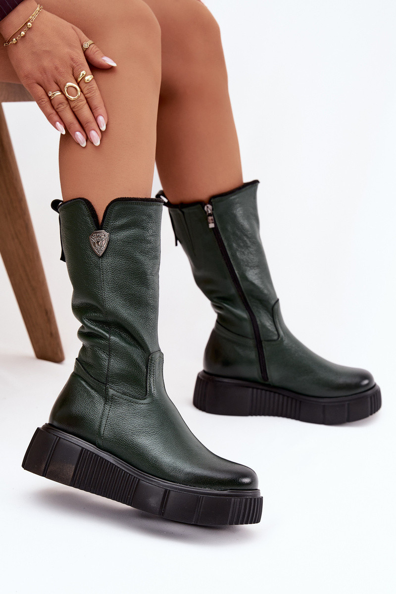 Botas largas de cuero para mujer con lana en color verde Zazoo 70121