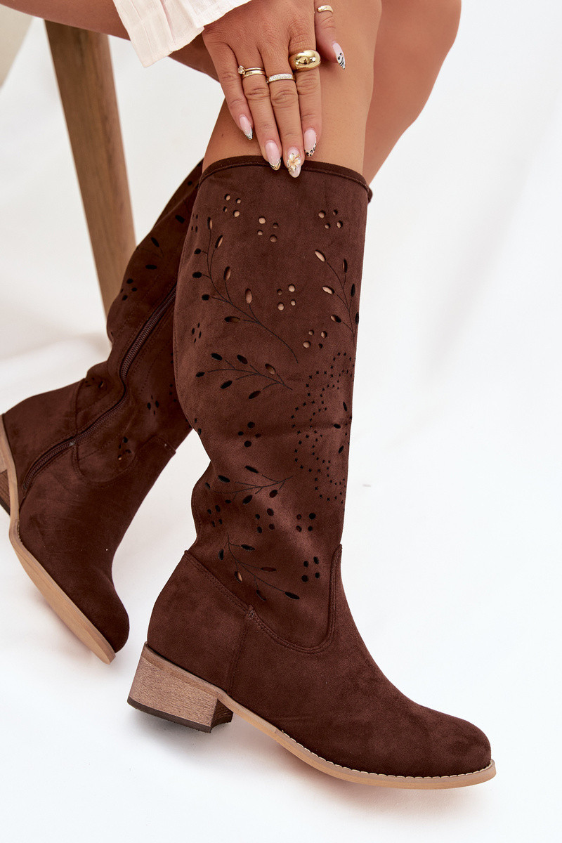 Botas de caña alta de color chocolate para mujer con elementos de encaje Helinna