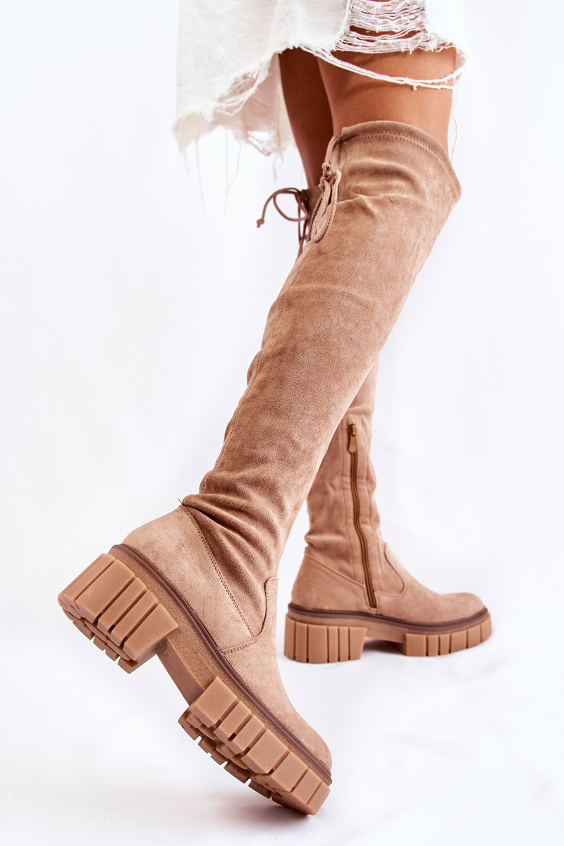 de gamuza Femenino botas por encima de la rodilla beige Cheera