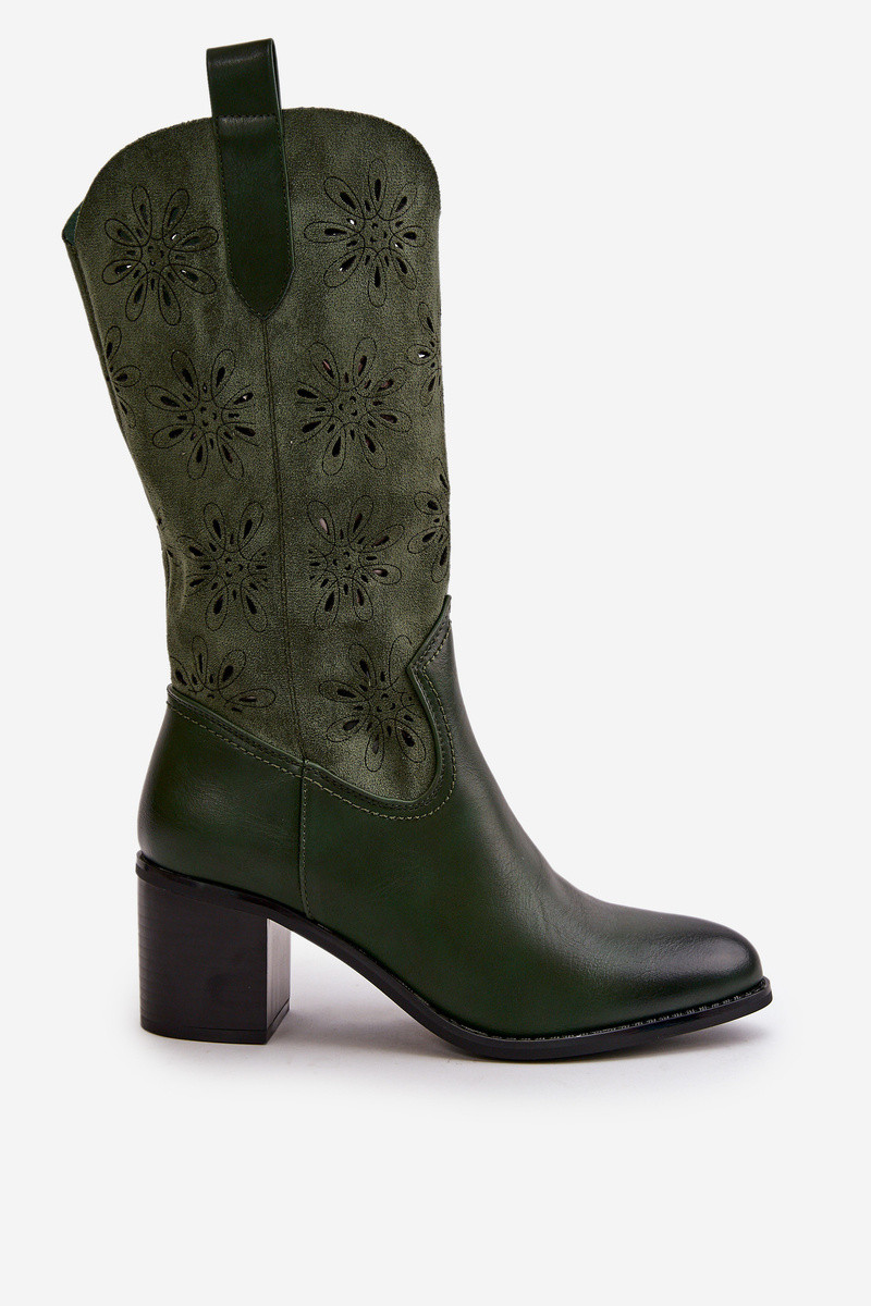 Botas de caña alta para mujer con elementos de calado hasta la mitad de la pantorrilla de ante sintético color verde Nevilos
