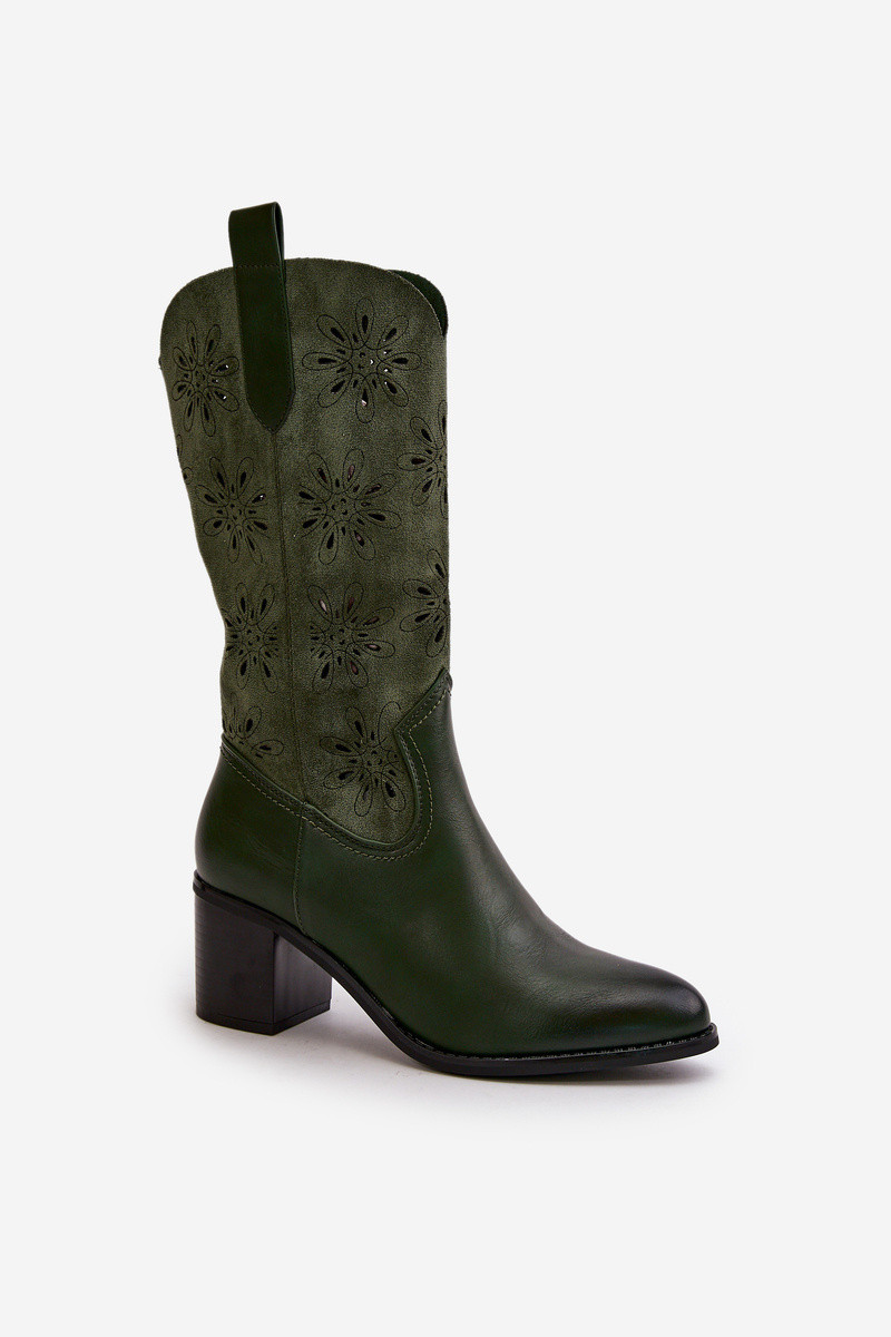 Femenino con elementos calados botas Mitad de la pantorrillade gamuza ecológicau color verde Nevilos