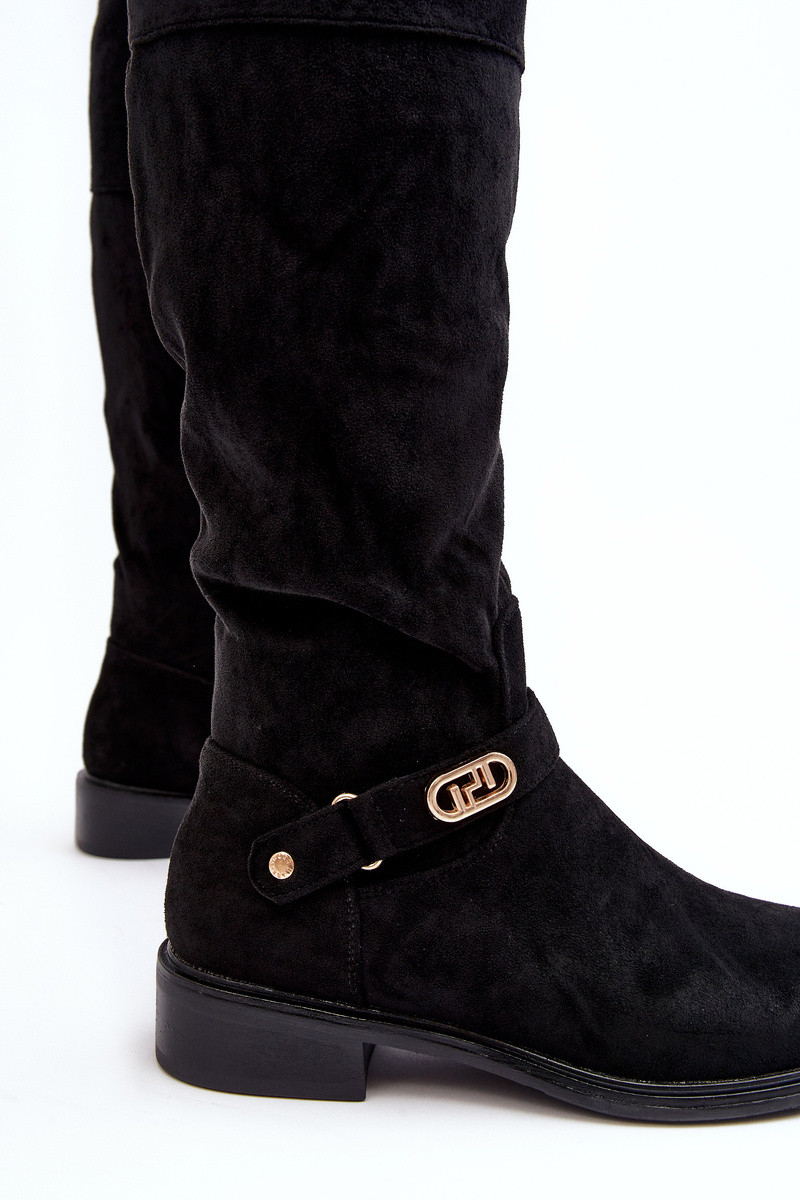 Botas largas de ante con tacones anchos forradas S.Barski HY07-31 color negro