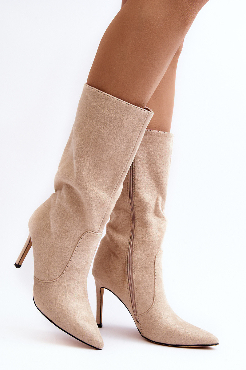 Femenino botas Mitad de la pantorrilla con tacones finos beige Odetteia