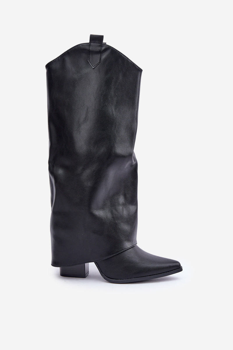 Un modelo convincente botasENyAiniętą CholeAką con tacones de color negro Rialivia