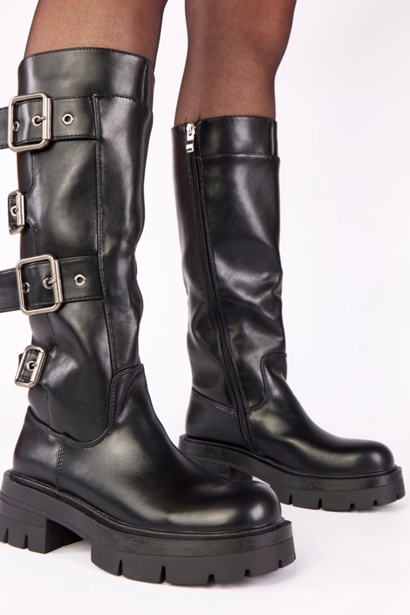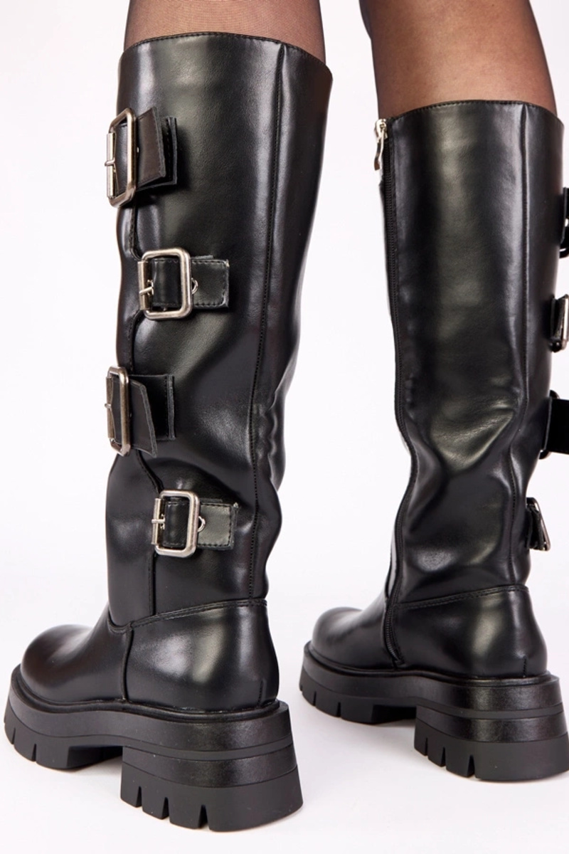 Botas negras sobre plataforma con hebillas decorativas Divera