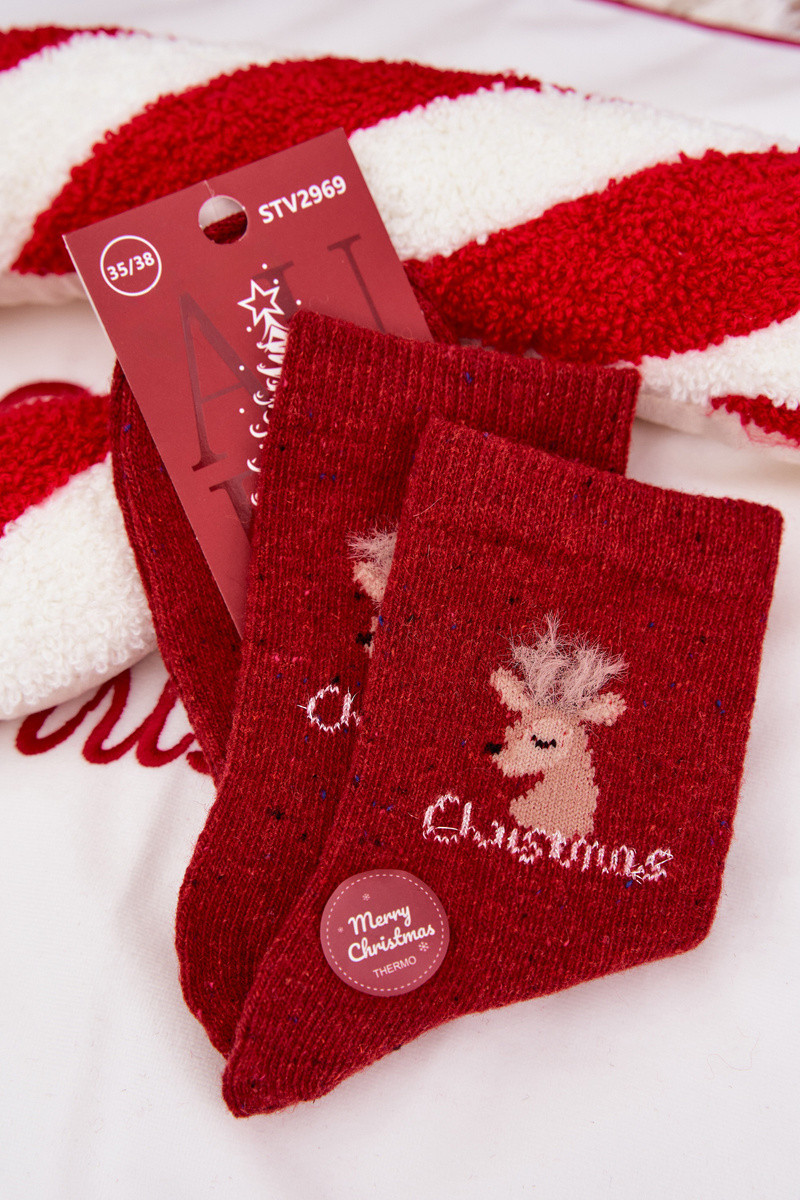 Medias Femenino Activadovidad con ciervos ENełna Alpaca color rojo