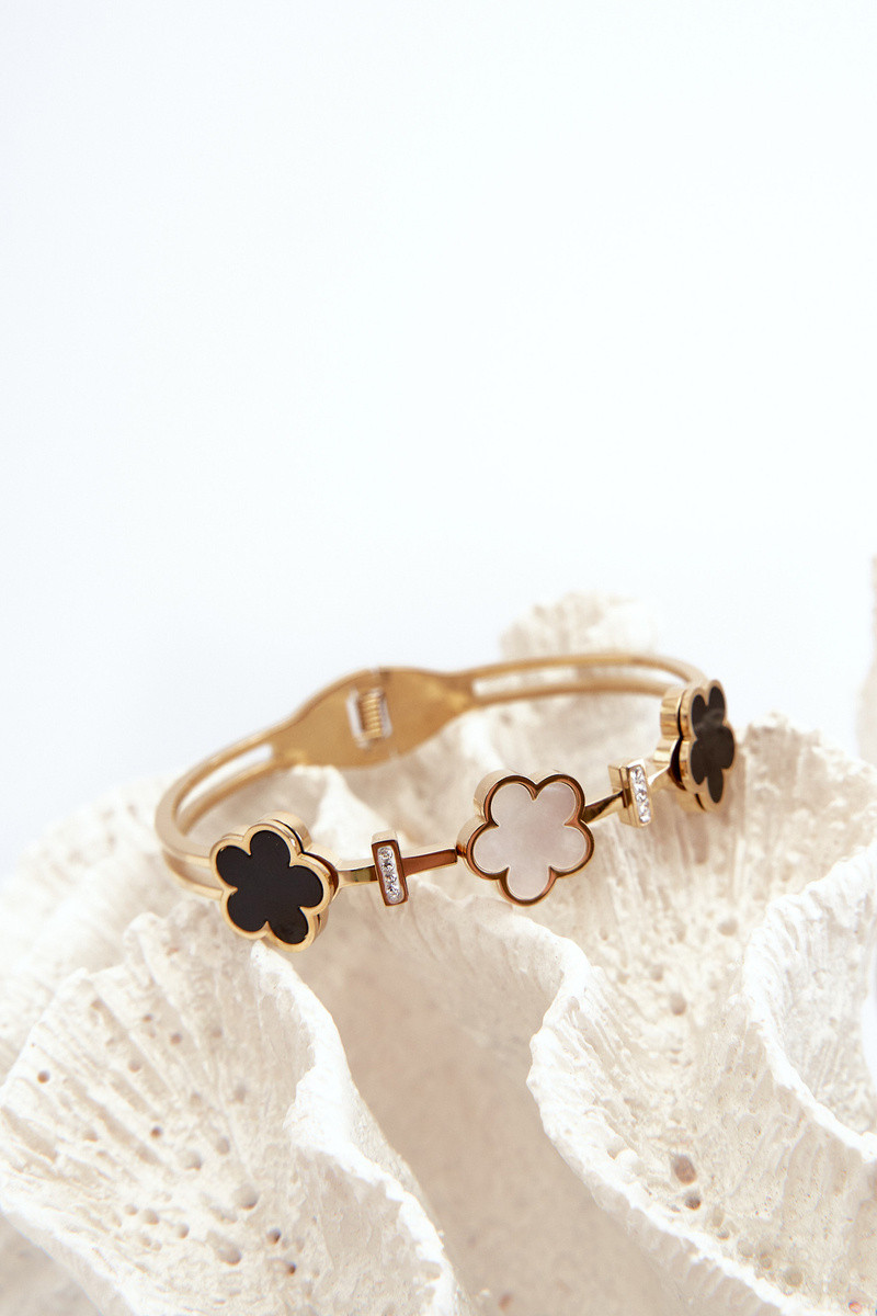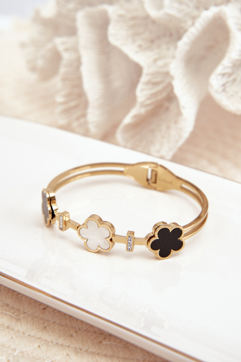 Pulsera de mujer con florecitas de acero inoxidable color oro