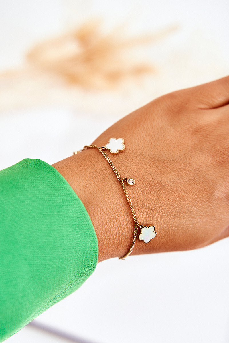 Pulsera con cadena y flores color oro-blanco