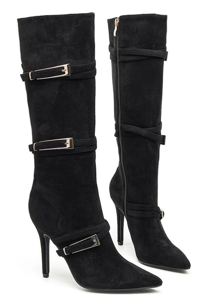 Botas largas negras con tacón delgado y hebillas decorativas Sadie