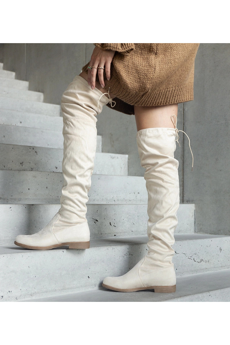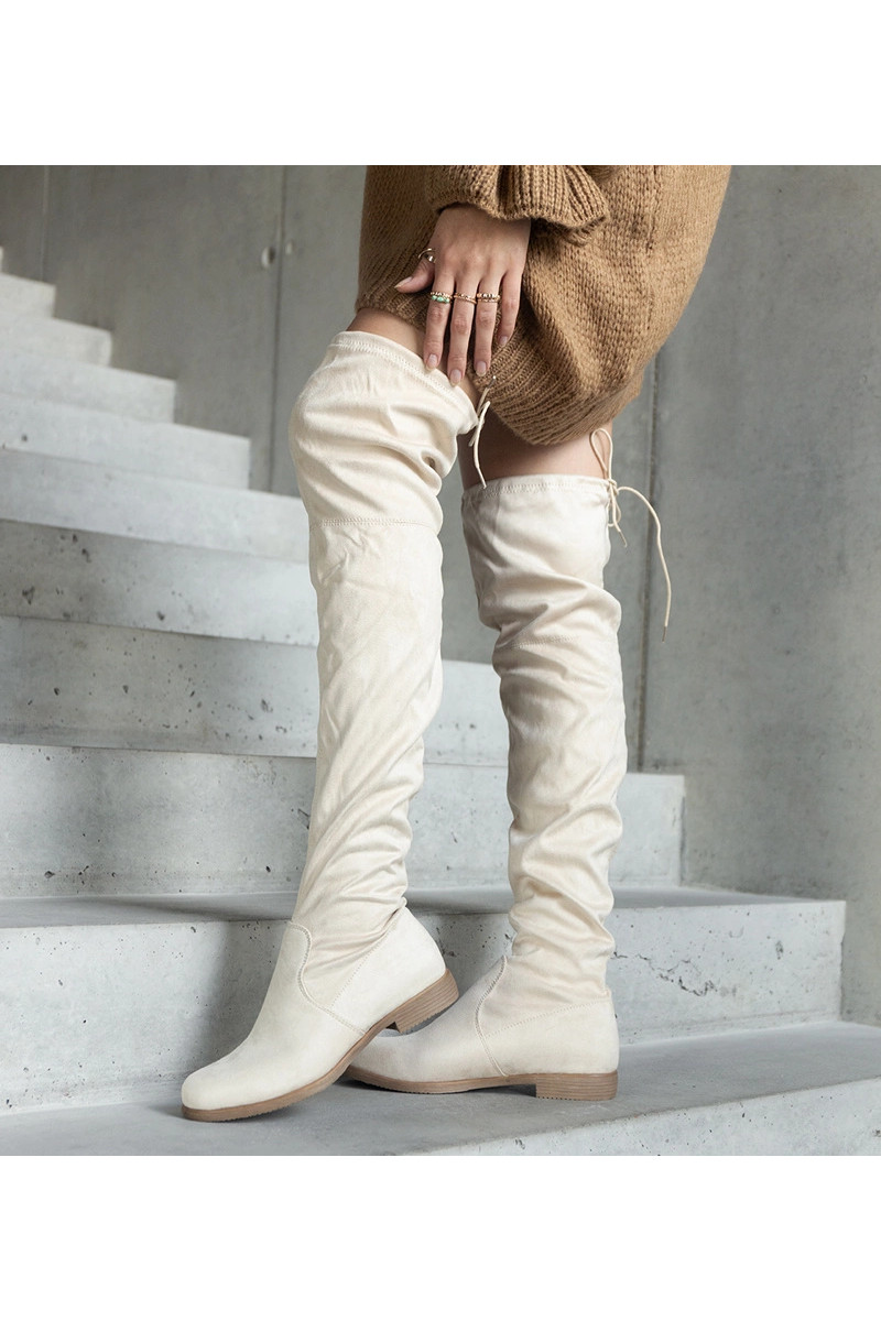Botas largas beige con plataforma de eco-suede Hallora