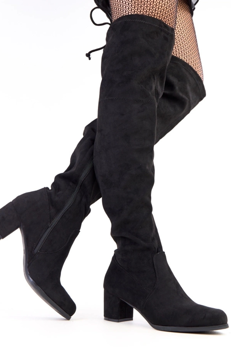 botas de mujer de gamuza con una plataforma S.Barski HY53-8 de color negro