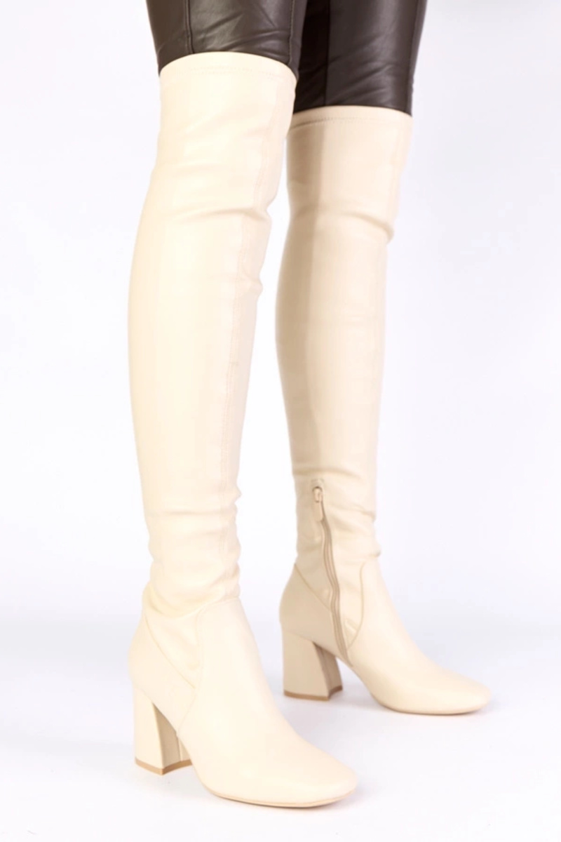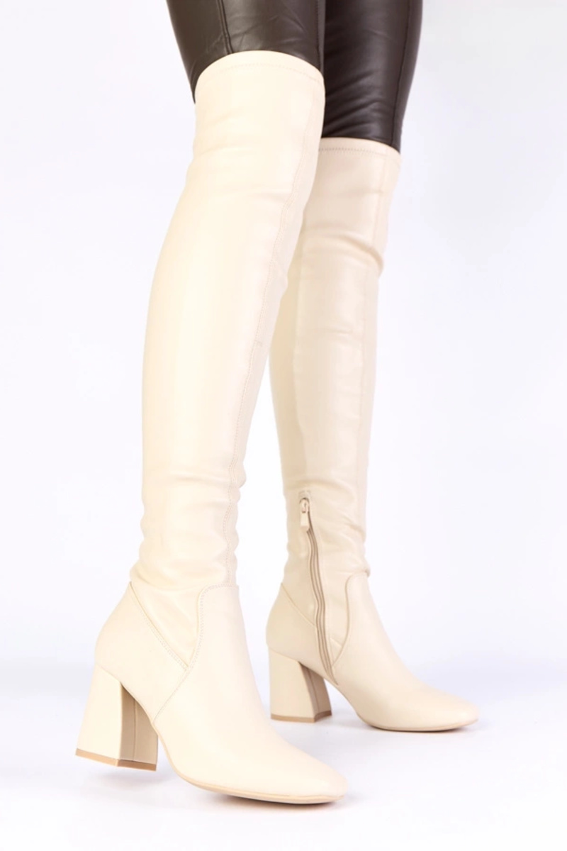 Botas largas color arena por encima de la rodilla con tacón Louna