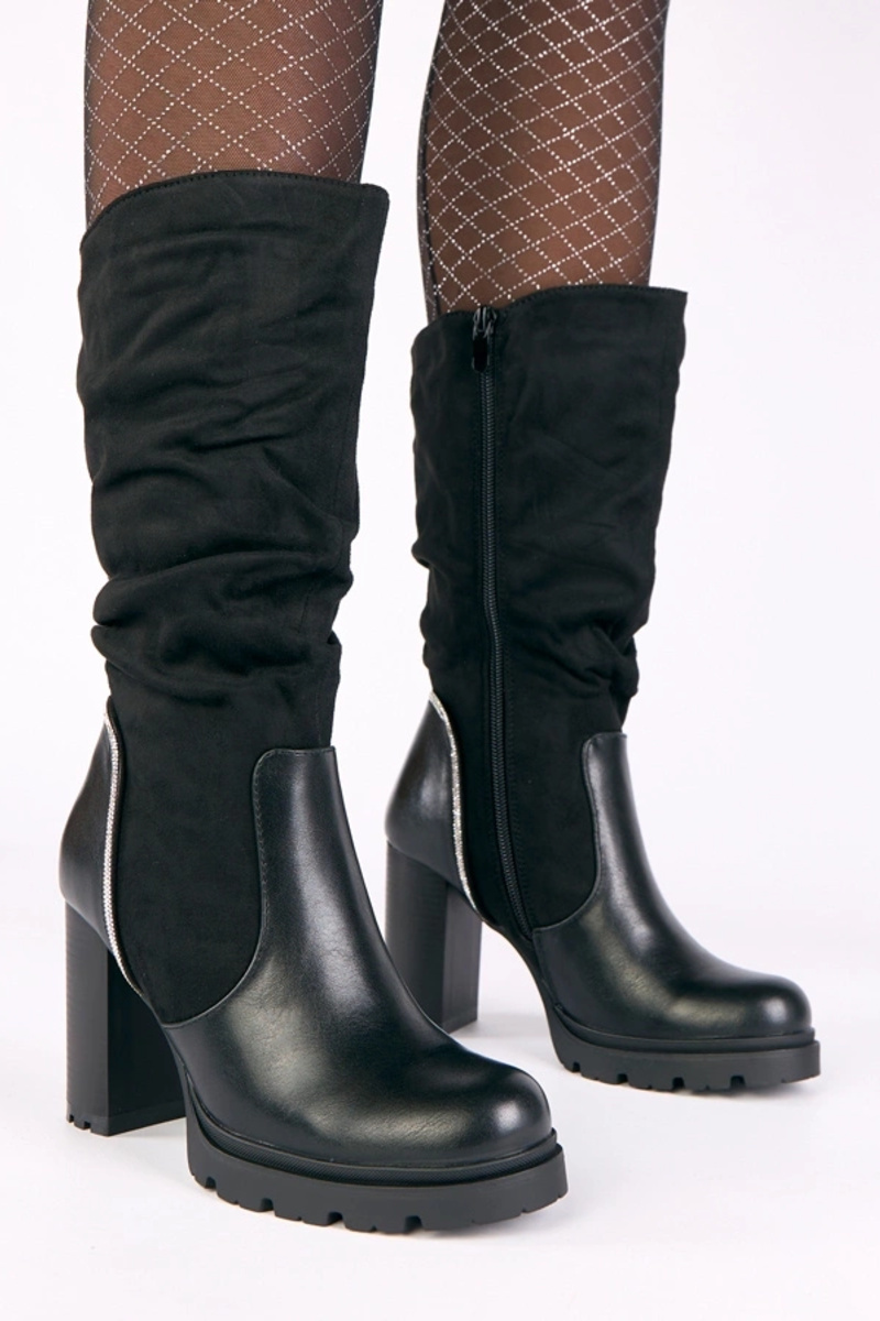 Botines negros con tacón decorados con piedras de circonio Simreta