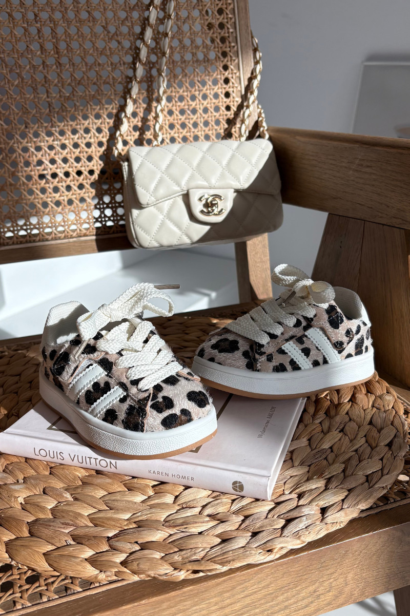 Zapatillas deportivas infantiles modelo Sneakers con estampado de leopardo, color arena, Amelle