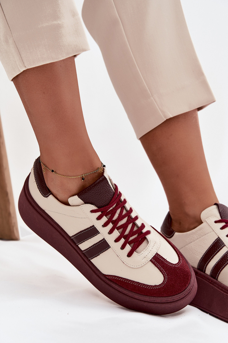 Piel Zapatillas modelo zapatos. Femenino con una plataforma Zazoo 3775 beige-borgoña