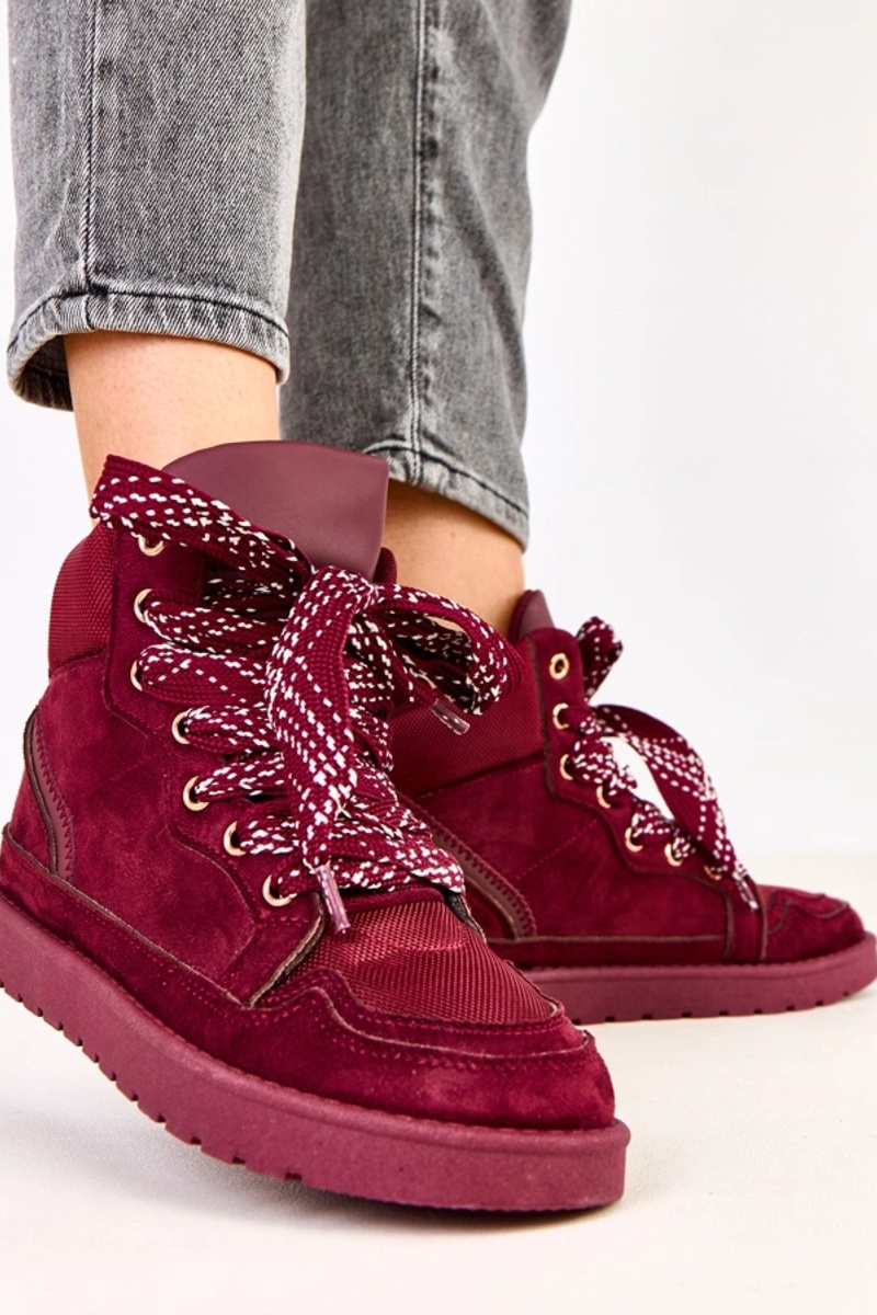Zapatillas deportivas altas color cereza con cordones gruesos Klevis