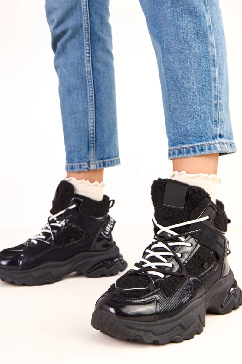 Zapatillas deportivas negras con cordones y pelaje Perry