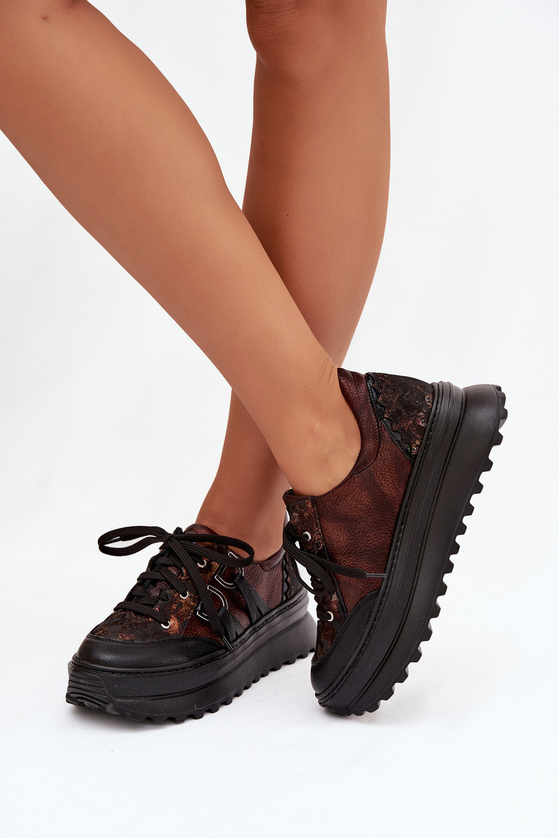 Piel Zapatillas modelo zapatos. Femenino con una plataforma Tiene queciejka 06562-25 CzekoladoAe
