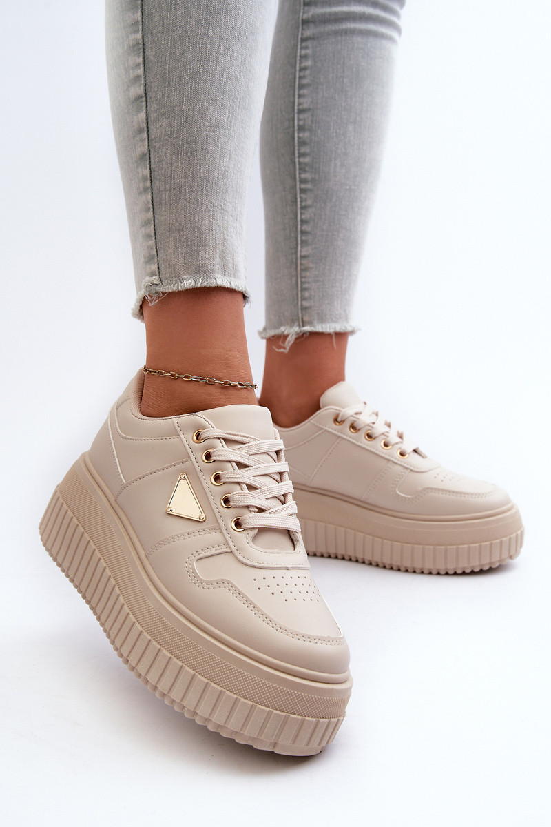 Zapatillas deportivas para mujeres color marfil de piel sintética con plataforma "Chrisstin"
