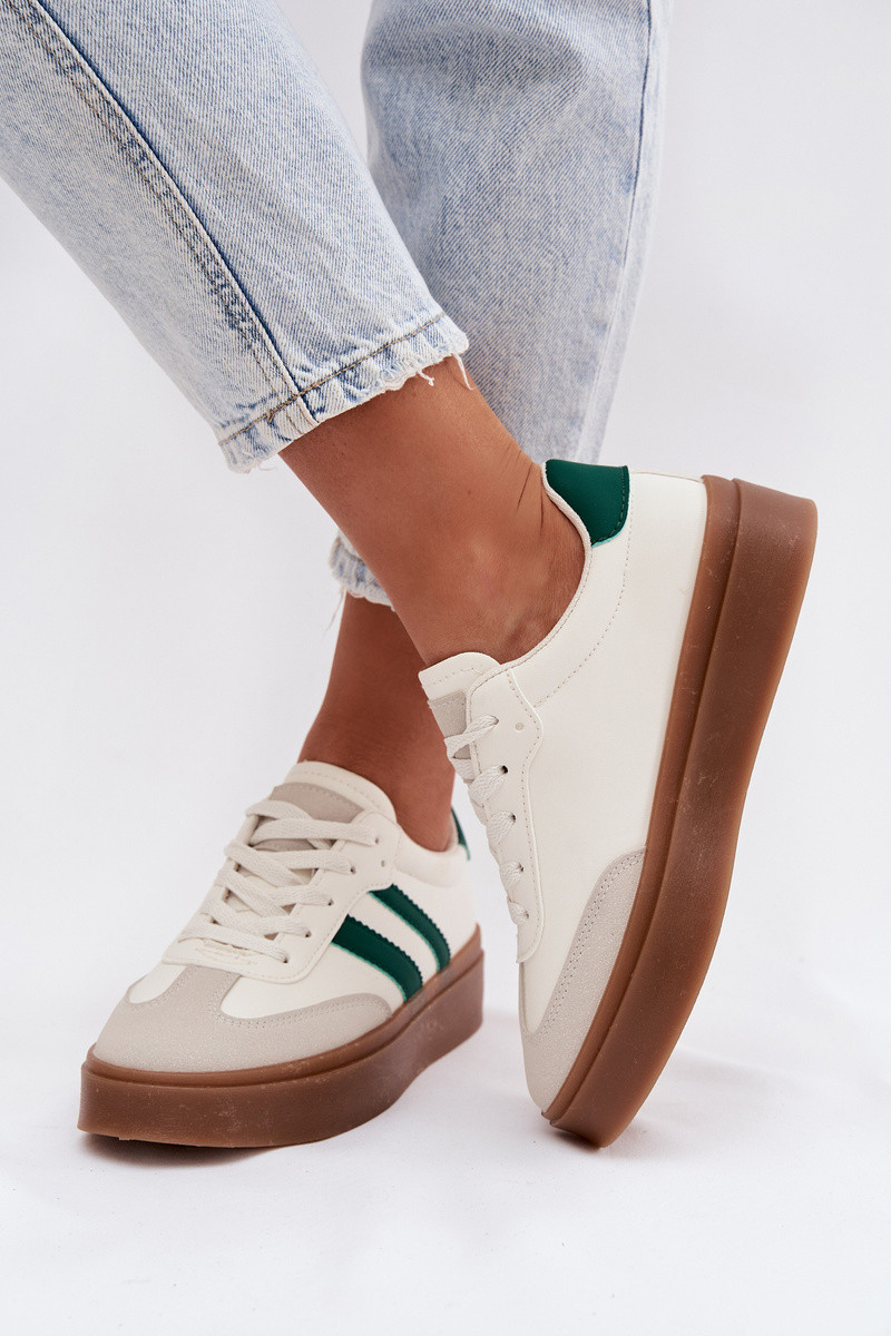 Zapatos deportivos de mujer con plataforma de piel sintética color blanco-verde Elaraven
