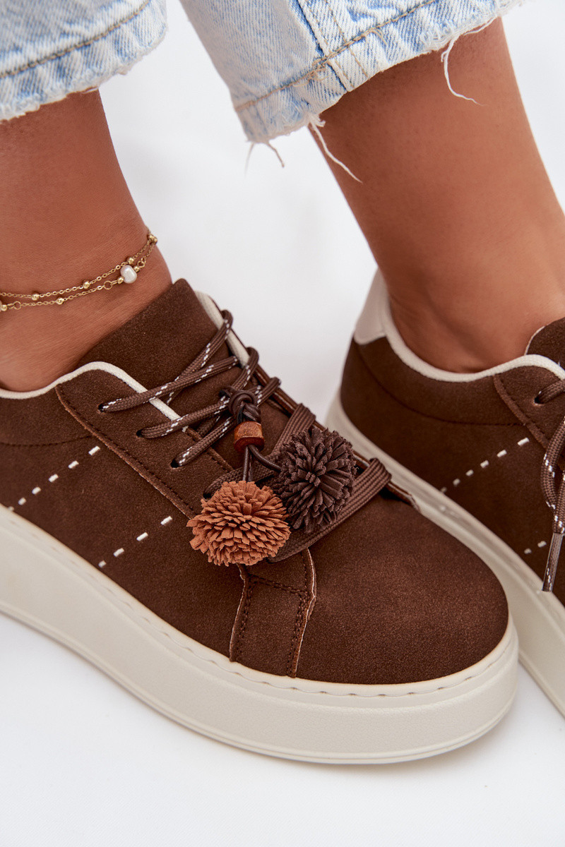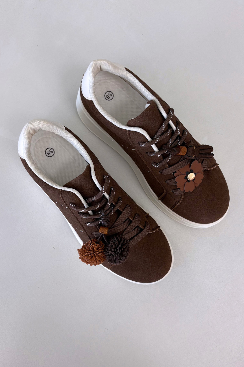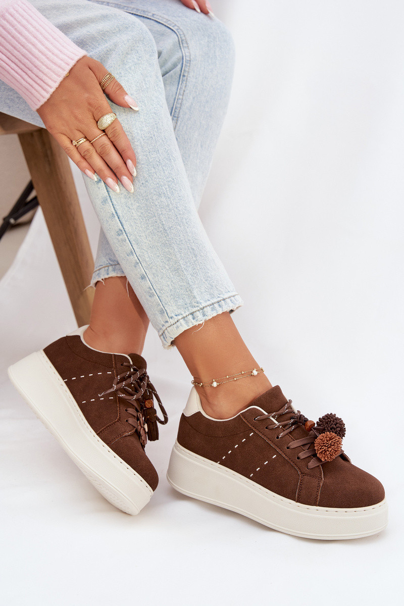 Zapatillas deportivas de plataforma Corinna color chocolate para mujer con pompones decorativos