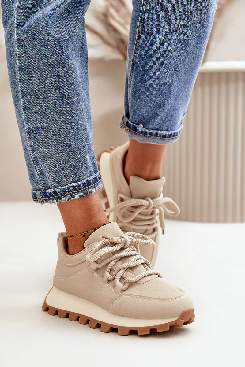 Zapatillas deportivas modelo Sneakers con plataforma de cuero sintético color arena Riadella