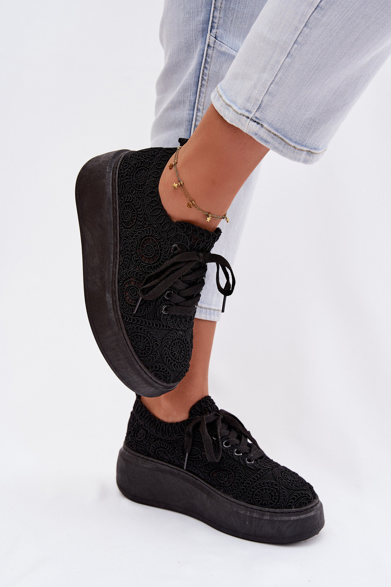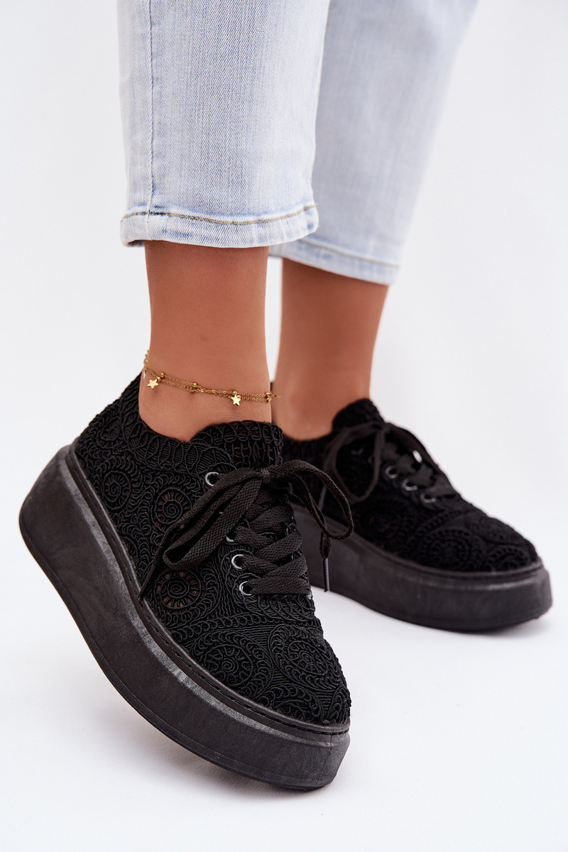 SzydełkoAe Zapatillas Femenino con una plataforma de color negro Evalora