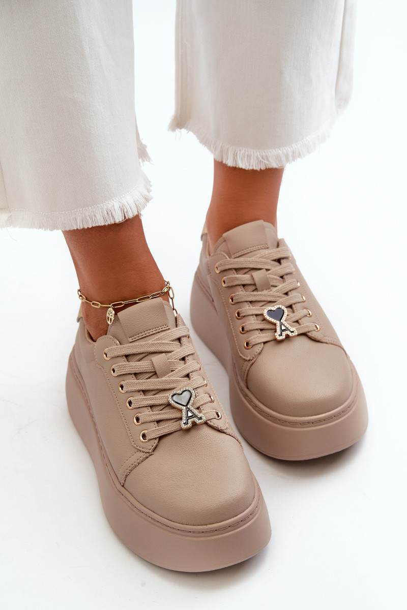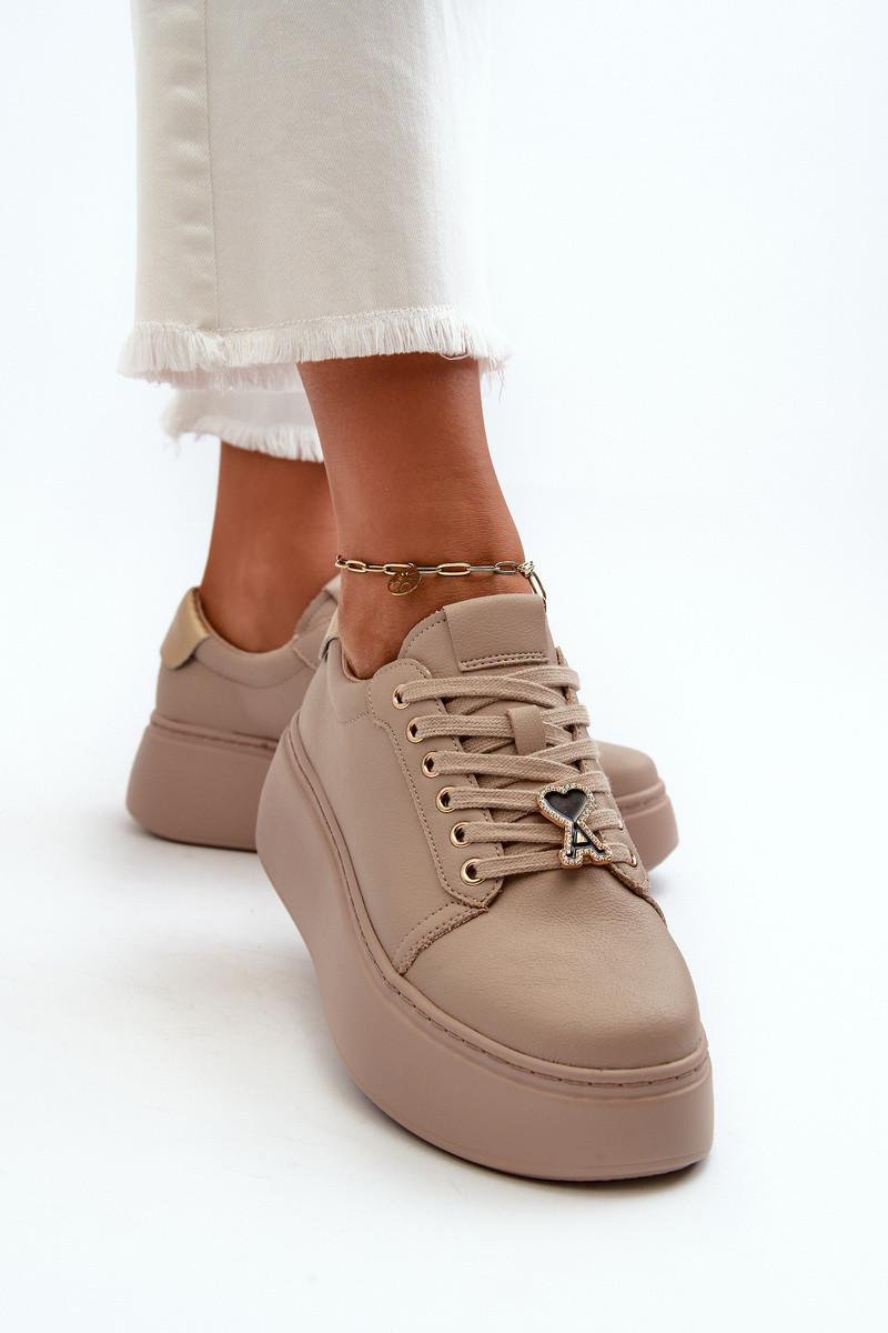 Femenino Piel Zapatillas modelo zapatos. con una plataforma beige Vinceza 66700