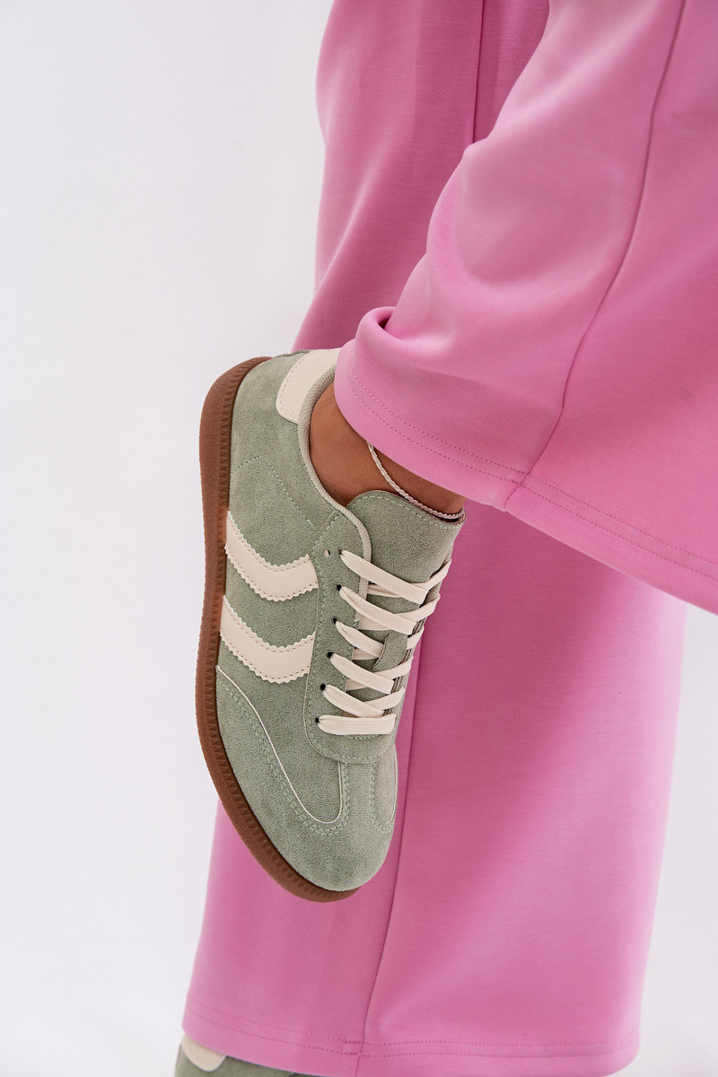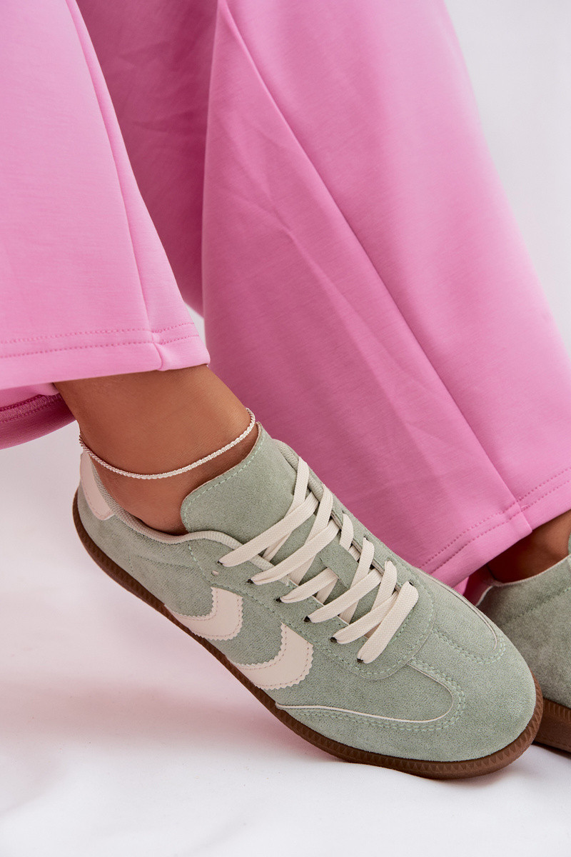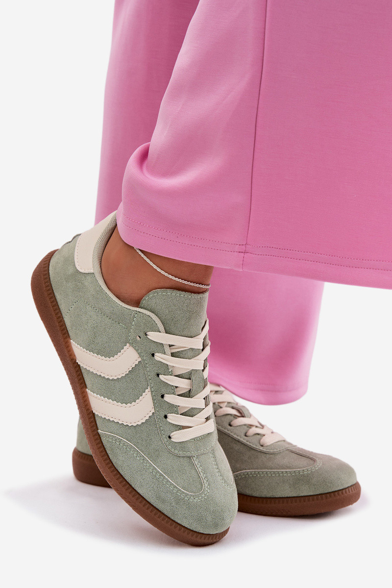 Zapatillas modelo zapatos. Femeninode gamuza ecológicau color verde Jesavella