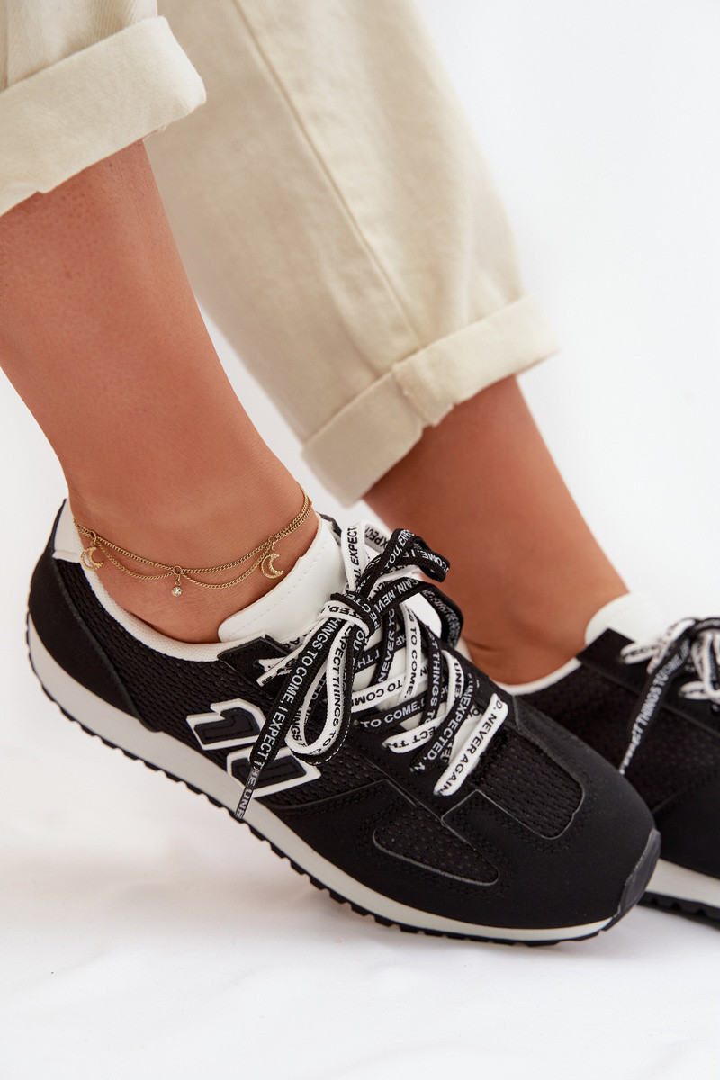 Zapatillas deportivas de mujer con cordones decorativos color negro Henira