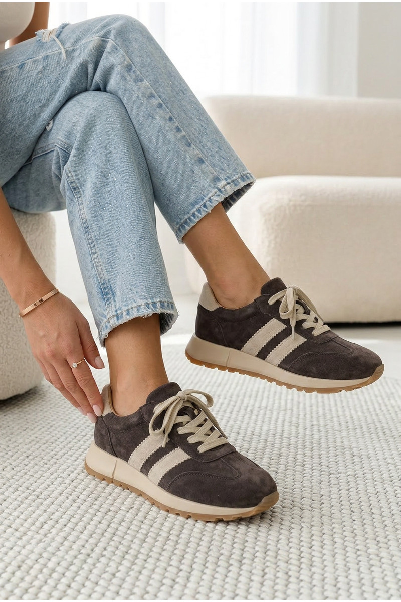 Zapatillas modelo zapatos. FemeninoActivadoturalnego de gamuzau color marrón Tiene querceline