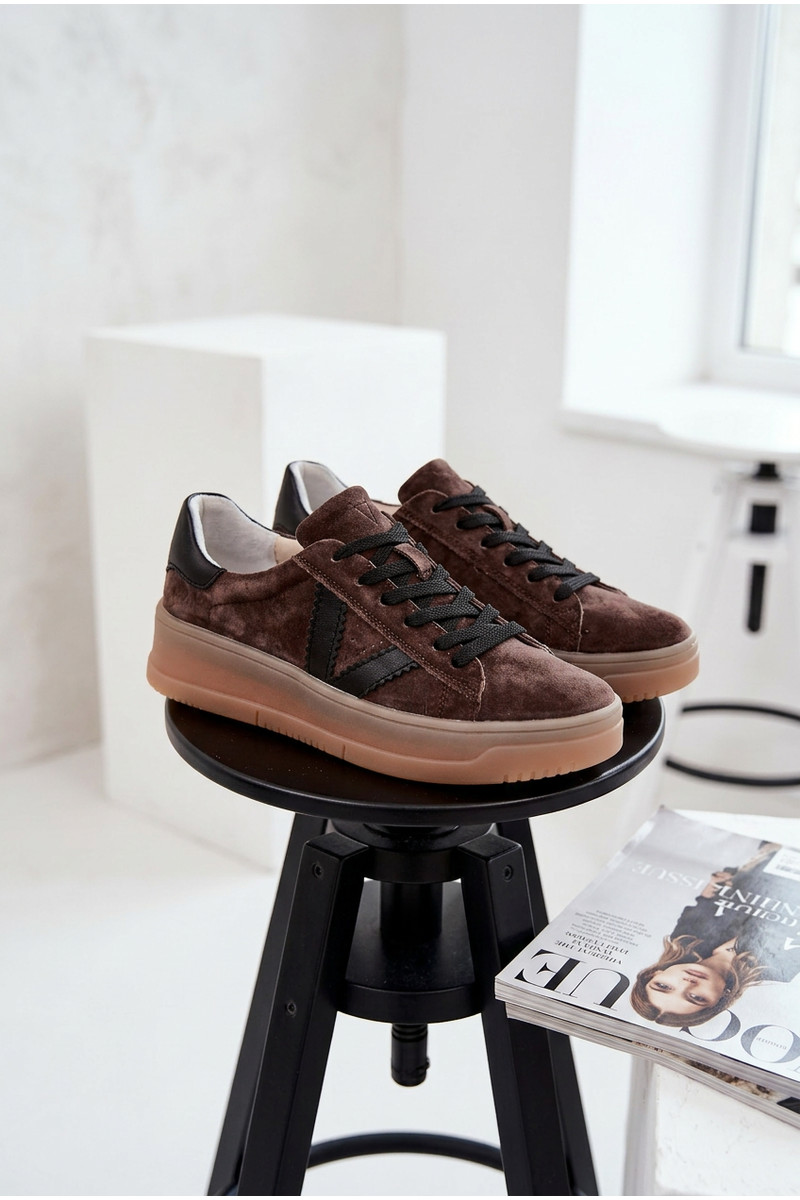 Zapatillas modelo zapatos. FemeninoActivadoturalnego de gamuzau con una plataforma Vinceza 79597 color marrón