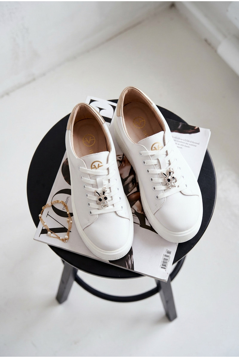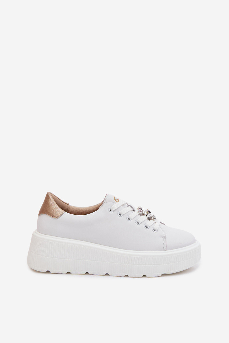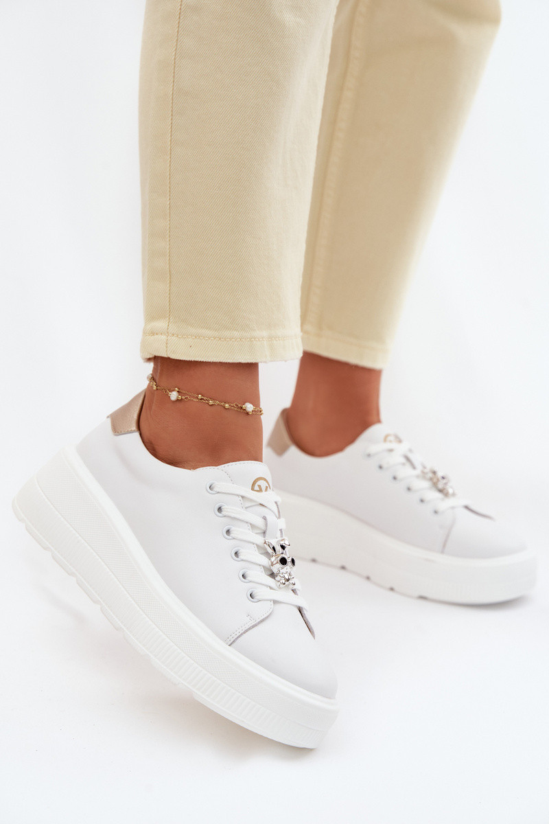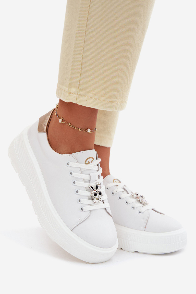 Piel Zapatillas modelo zapatos. Femenino con una plataformaPrzypinką Vinceza 39973 el color blanco