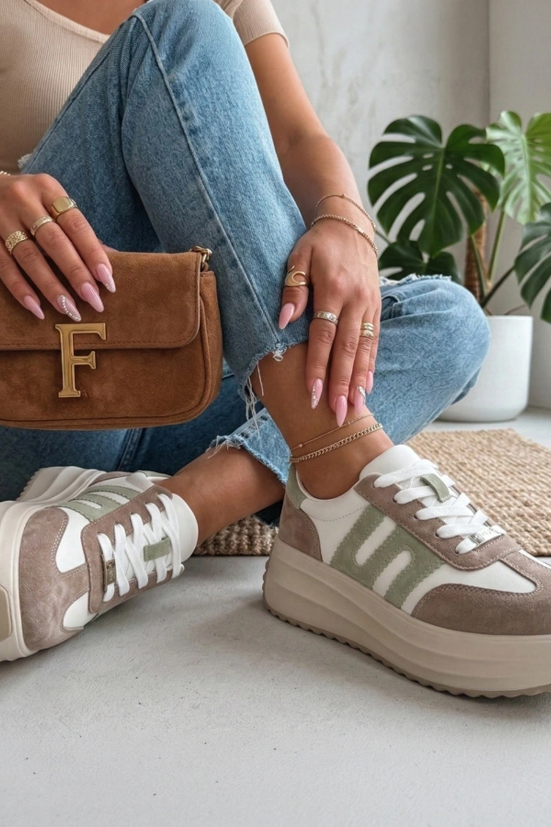 Zapatillas deportivas beige de mujer con corazón de purpurina Laira