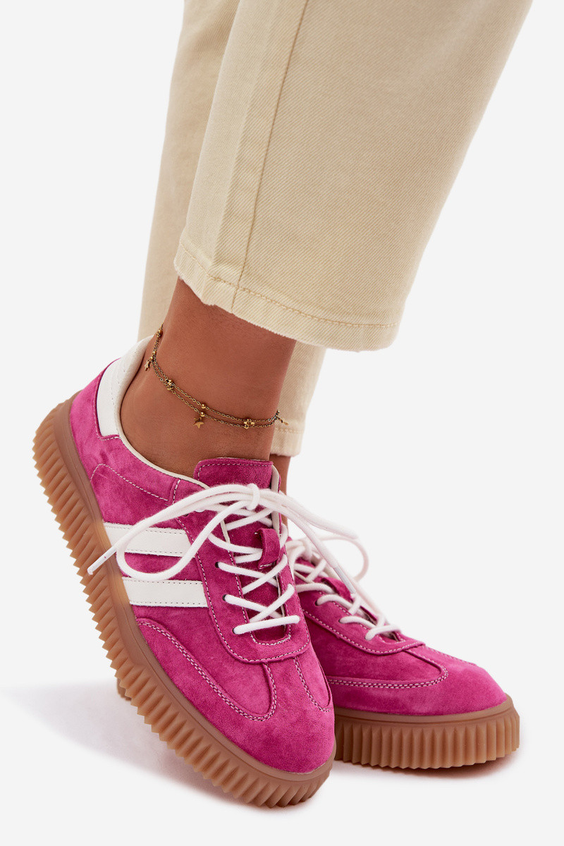 de gamuza Zapatillas modelo zapatos. Femenino con una plataforma color rosa Tiene querisae