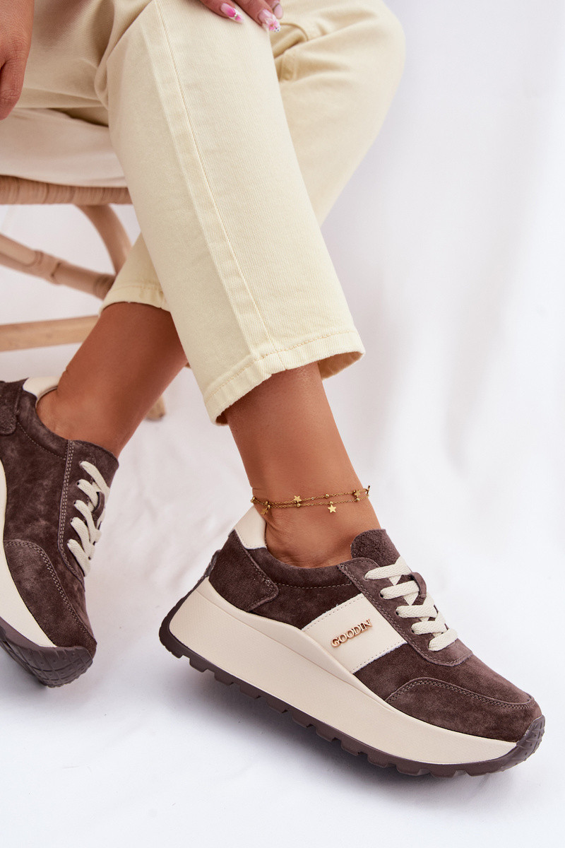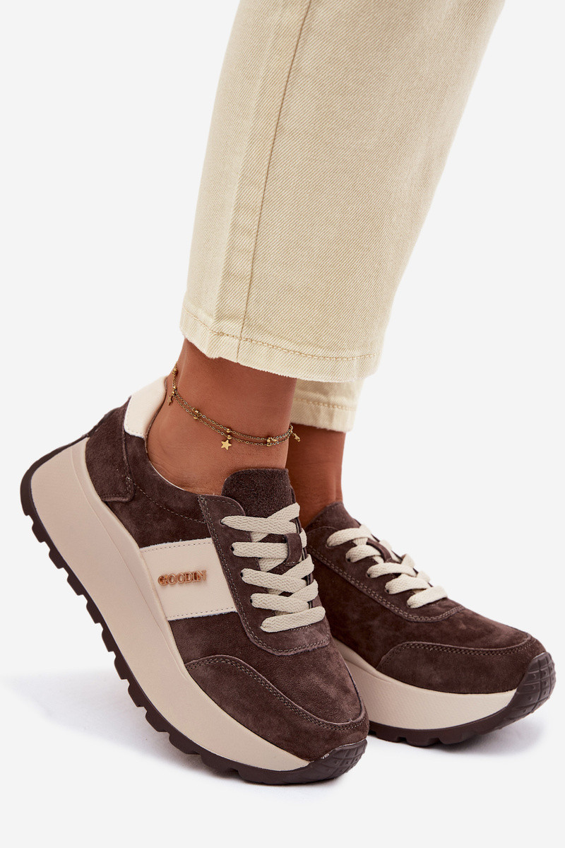 Zapatillas deportivas para mujeres con plataforma de ante natural color chocolate Rosinae
