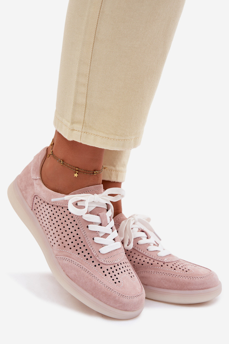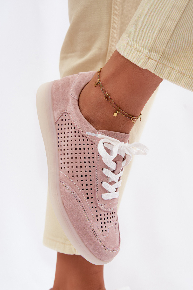 Zapatillas deportivas de ante para mujeres con detalles calados color arena Almora